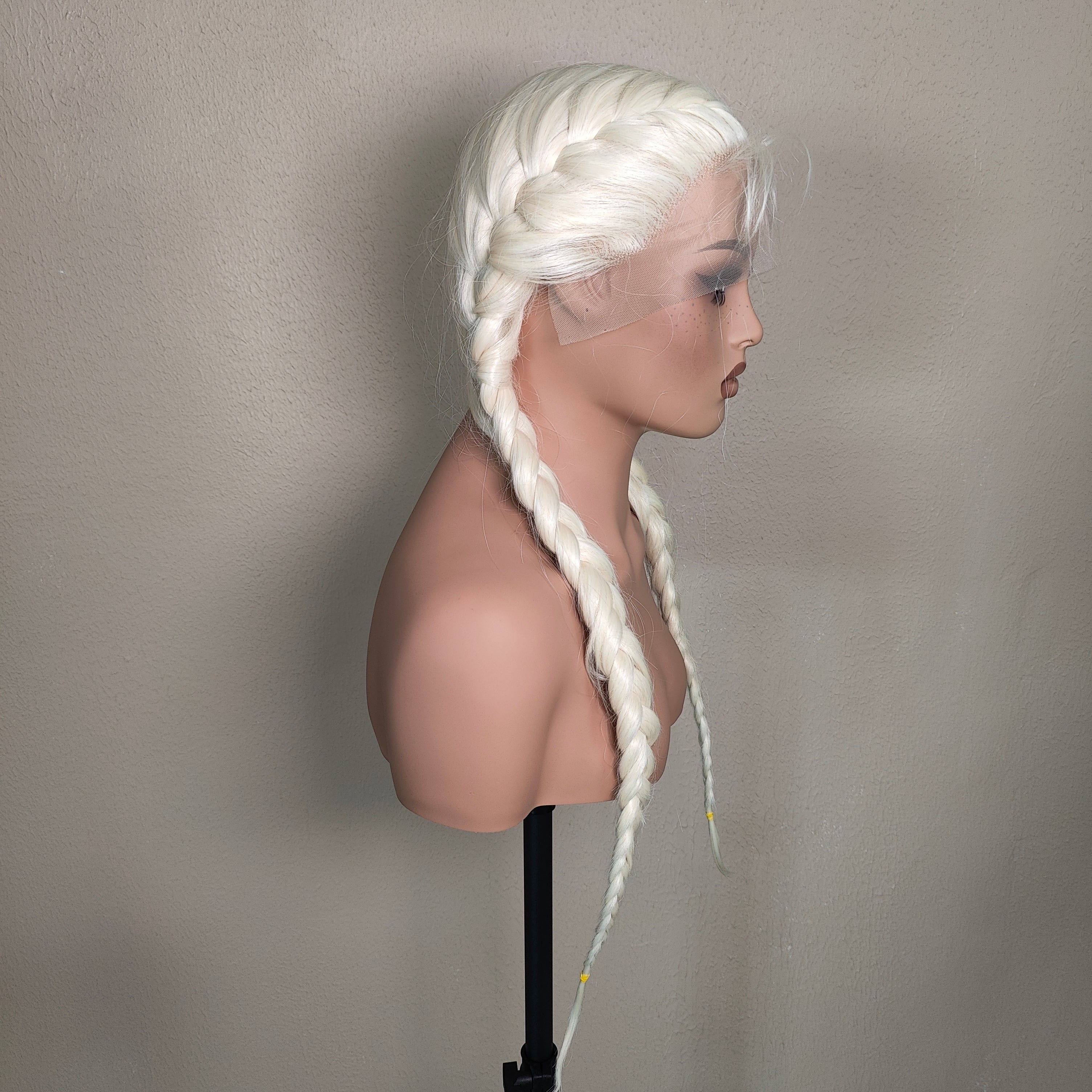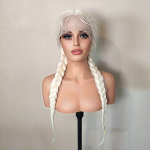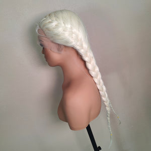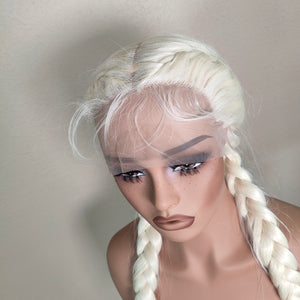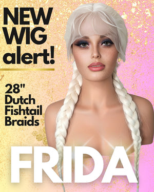 FRIDA is our newest wig for 2026. She is a blonde beauty with 28" Dutch fishtail braids. Full lace and baby hairs that can be styled as you want.
